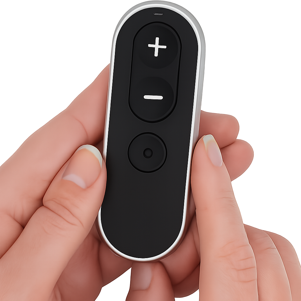 Très facile à utiliser, ces télécommandes sans fil sont un excellent choix pour celui ou celle qui ne voudrait pas utiliser de smartphone avec une application, mais qui souhaiterait tout de même ajuster ses aides auditives discrètement du bout des doigts, de sa poche ou de son sac.
