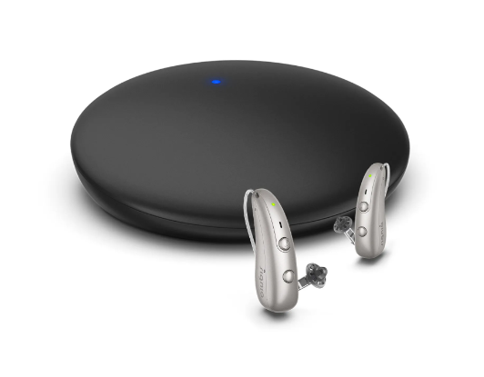 Selon le modèle de vos appareils auditifs, Signia propose aussi la possibilité d’obtenir un chargeur plus compact avec une batterie intégrée. Ainsi, votre chargeur prendra moins de place dans votre valise lorsque vous voyagerez et si jamais une coupure de courant survient, vous pourrez toujours continuer de les charger.