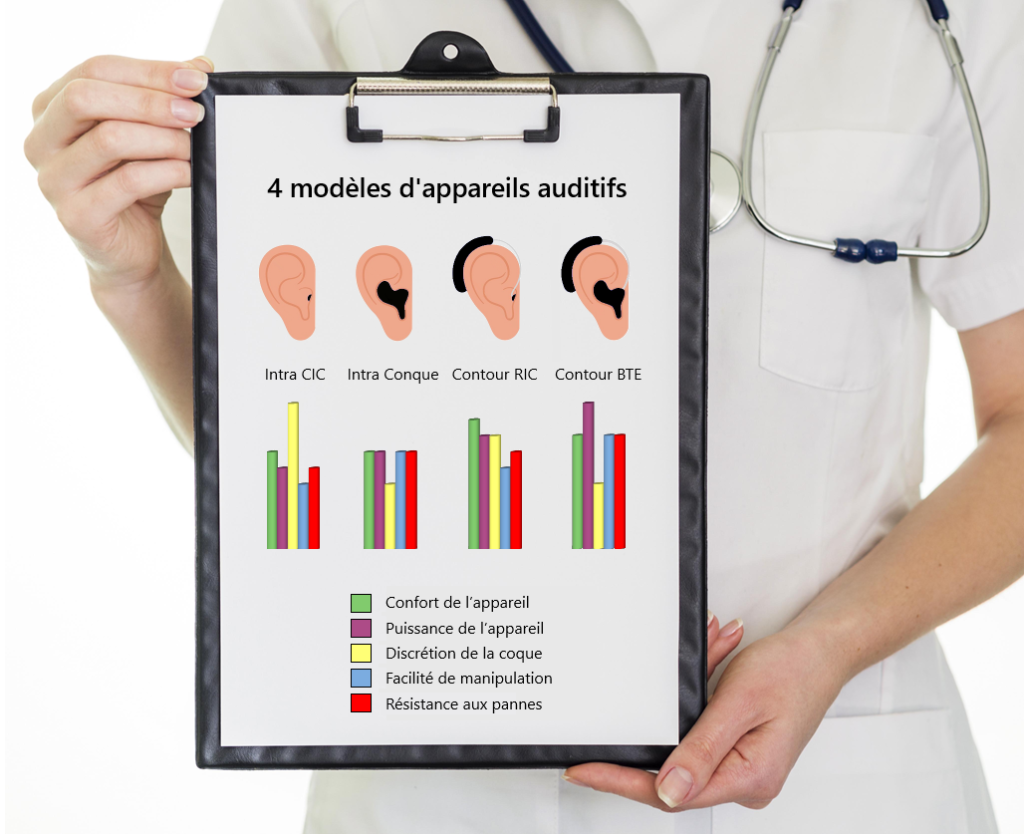 - les micro-contours d’oreille, discrets et placés derrière l’oreille (environ 75% du marché),